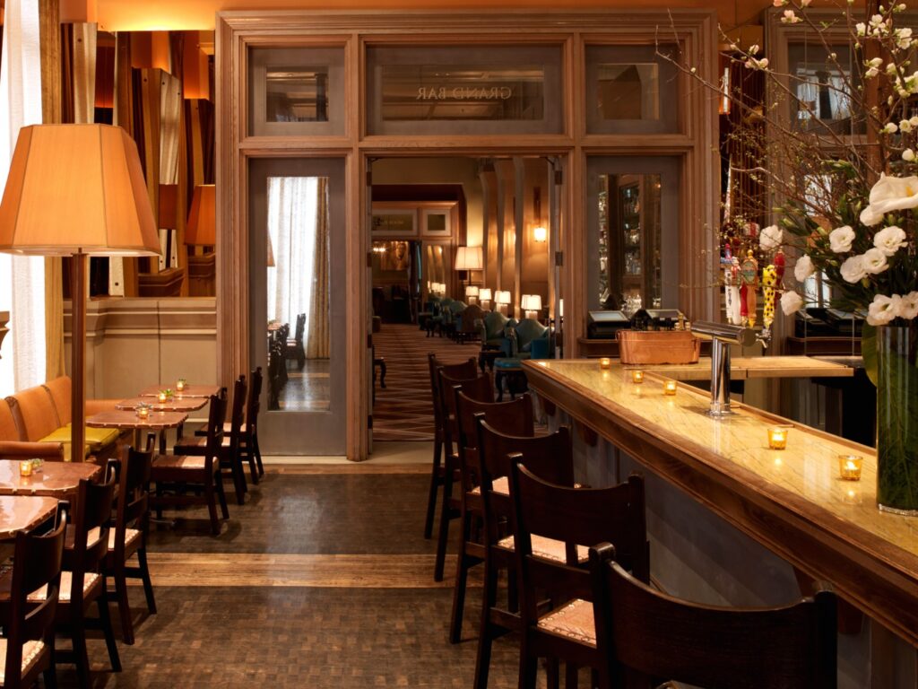The Grand Bar & Salon is a throwback to the way bars used to be. With nods to industrial SoHo, the gold-polished marble top oak bar and embossed leather bar stools with nail-head detailing are a high, dignified perch to nurse an Old-Fashioned. The chandeliers were inspired by the New York Public Library, while woven leather banquettes offer a more intimate hangout along the soaring windows and terrazzo floors with nickel strips. It’s a fine place to try something new, with a selection of 50 rare American Whiskeys and carefully crafted cocktails by mixologists Natasha David and Jeremy Oertel. When hunger calls, Grand Bar serves a full menu of locally sourced fare for breakfast, brunch, lunch and dinner.